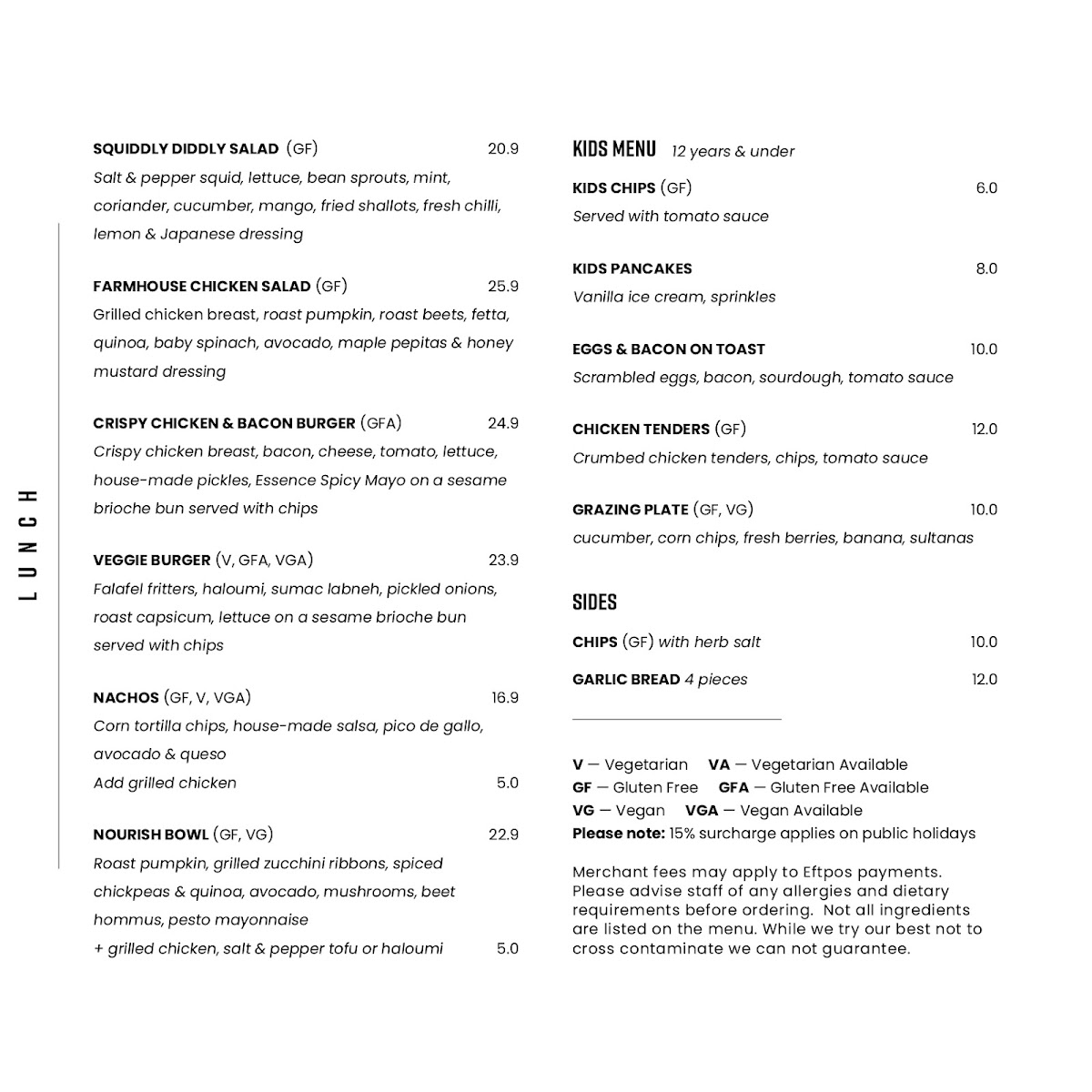 Gluten Free Available. Bacon, free-range egg, burger cheese & Essence relish. Add halloumi for $5